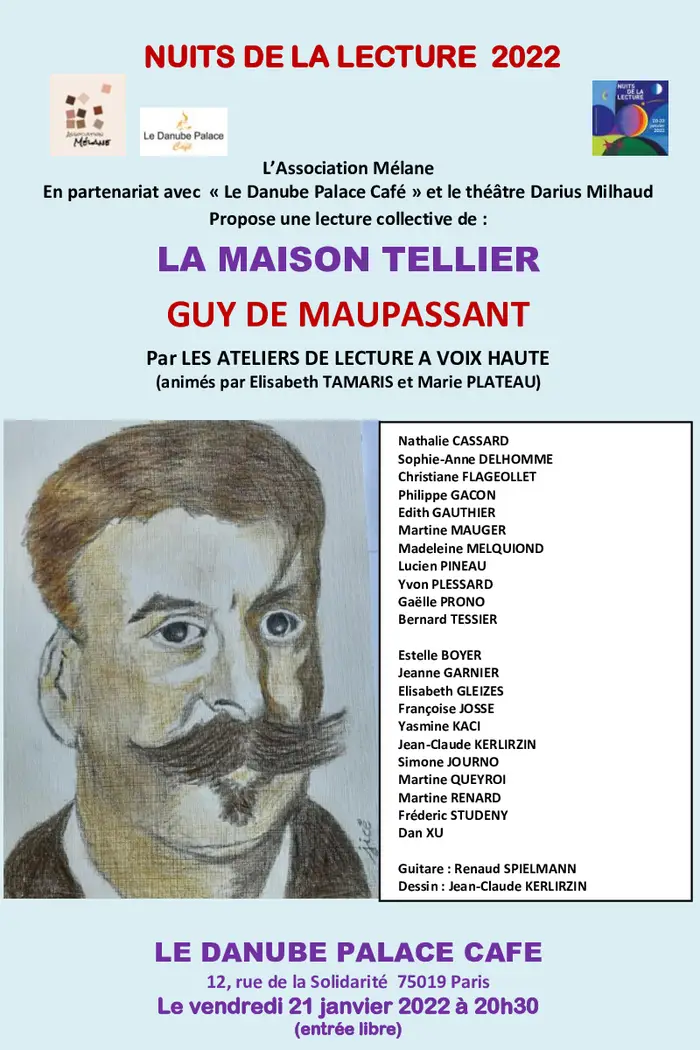 7 janvier 2026 : 20h, représentation de Au café Maupassant, feuilleton théâtral, textes de Guy de Maupassant, m.e.s. Marie-Louise Bischofberger, Théâtre de National de Nice (06).
