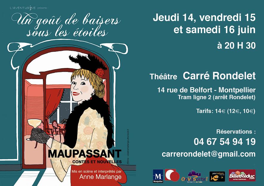 9 janvier 2026 : 20h, représentation de Au café Maupassant, feuilleton théâtral, textes de Guy de Maupassant, m.e.s. Marie-Louise Bischofberger, Théâtre de National de Nice (06).